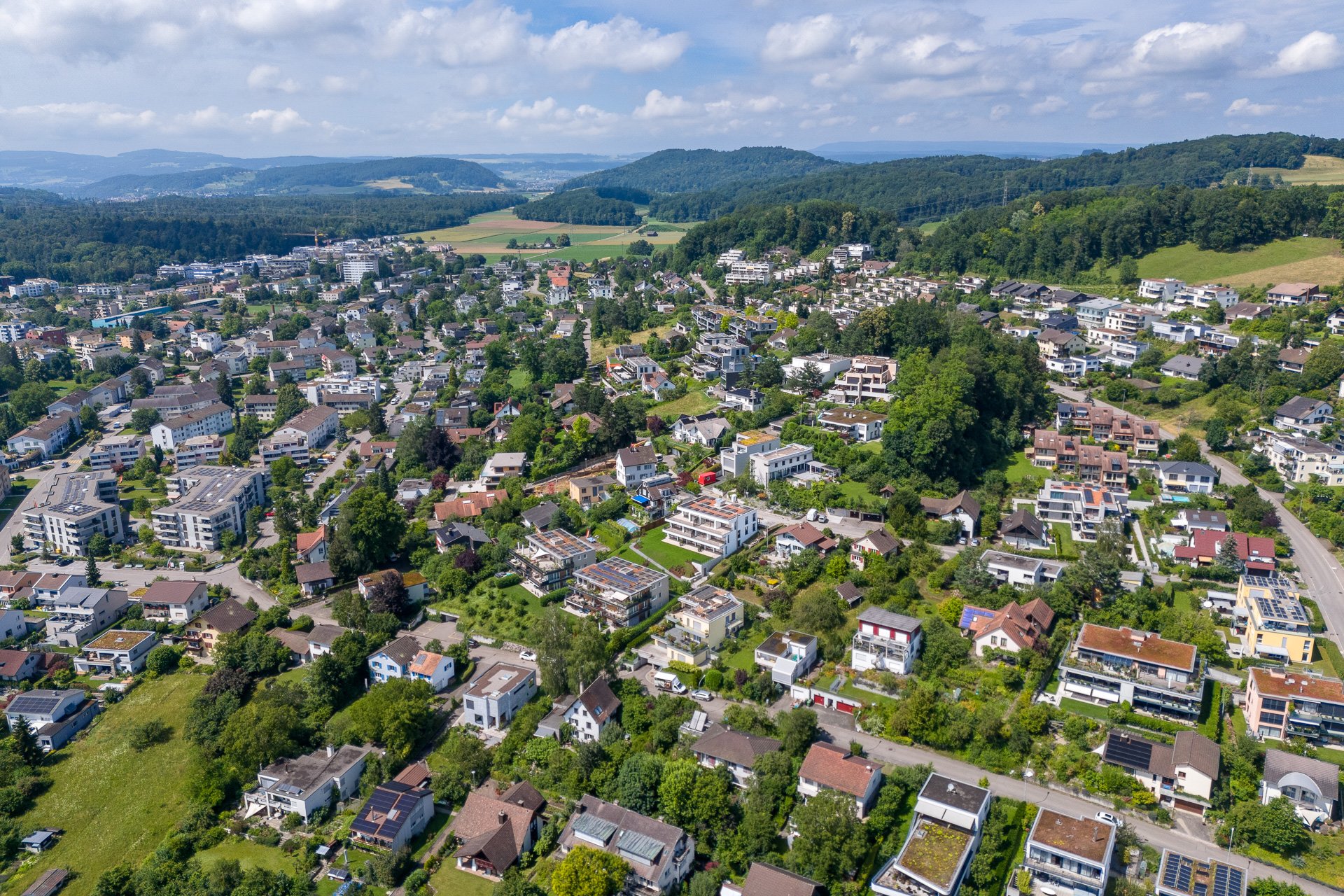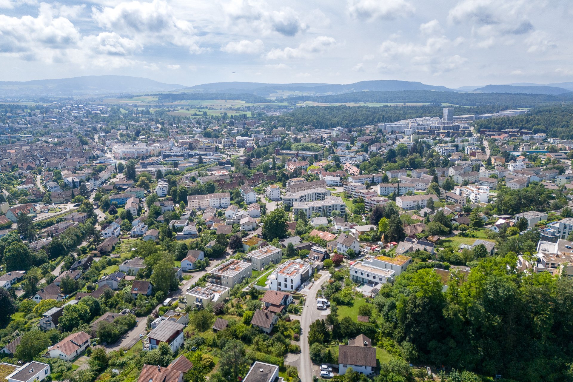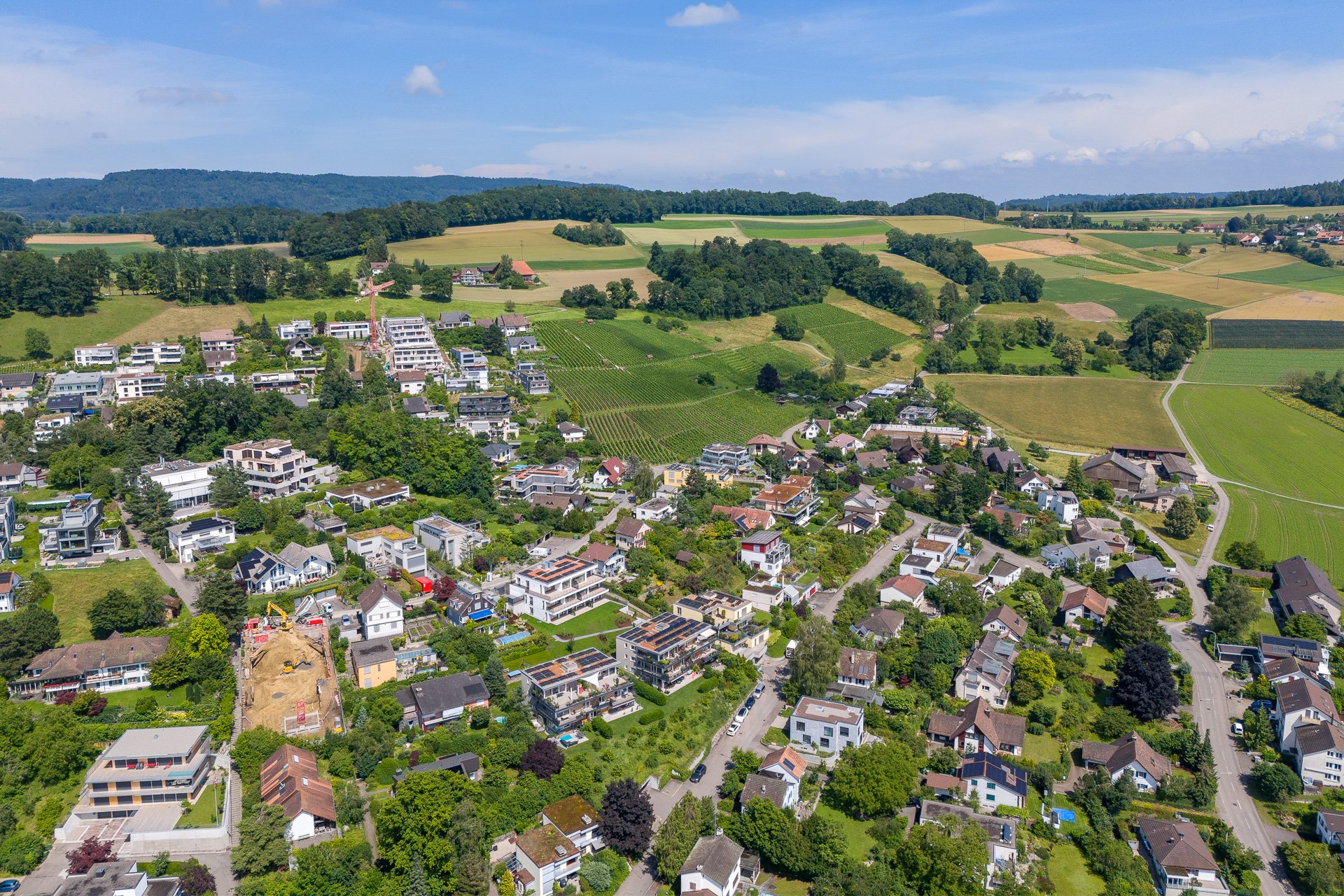 Das übersichtliche Wohnhaus mit 7 Wohnungen liegt erhöht. Die Aussicht über die ganze Stadt Bülach ist wunderschön.