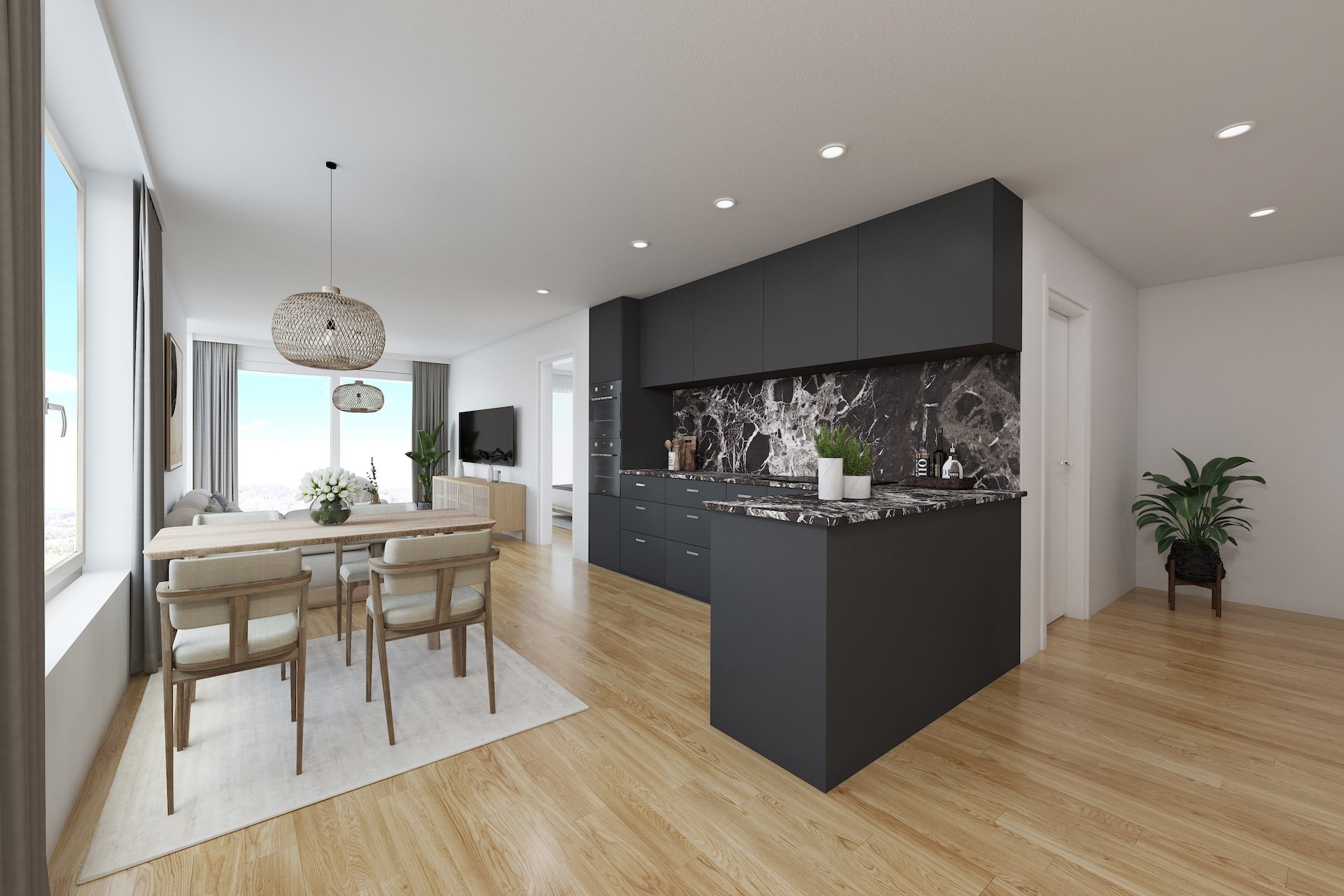 Die topmoderne Liegenschaft besticht durch ihre hochwertigen Materialien und technischen Finessen. Die Luxuswohnungen bieten jeden Komfort um sich ein schönes Zuhause zu schaffen. Die Wohnungen liegen erhöht über Bülach mit einer wunderbaren Aussicht über die Stadt Bülach.